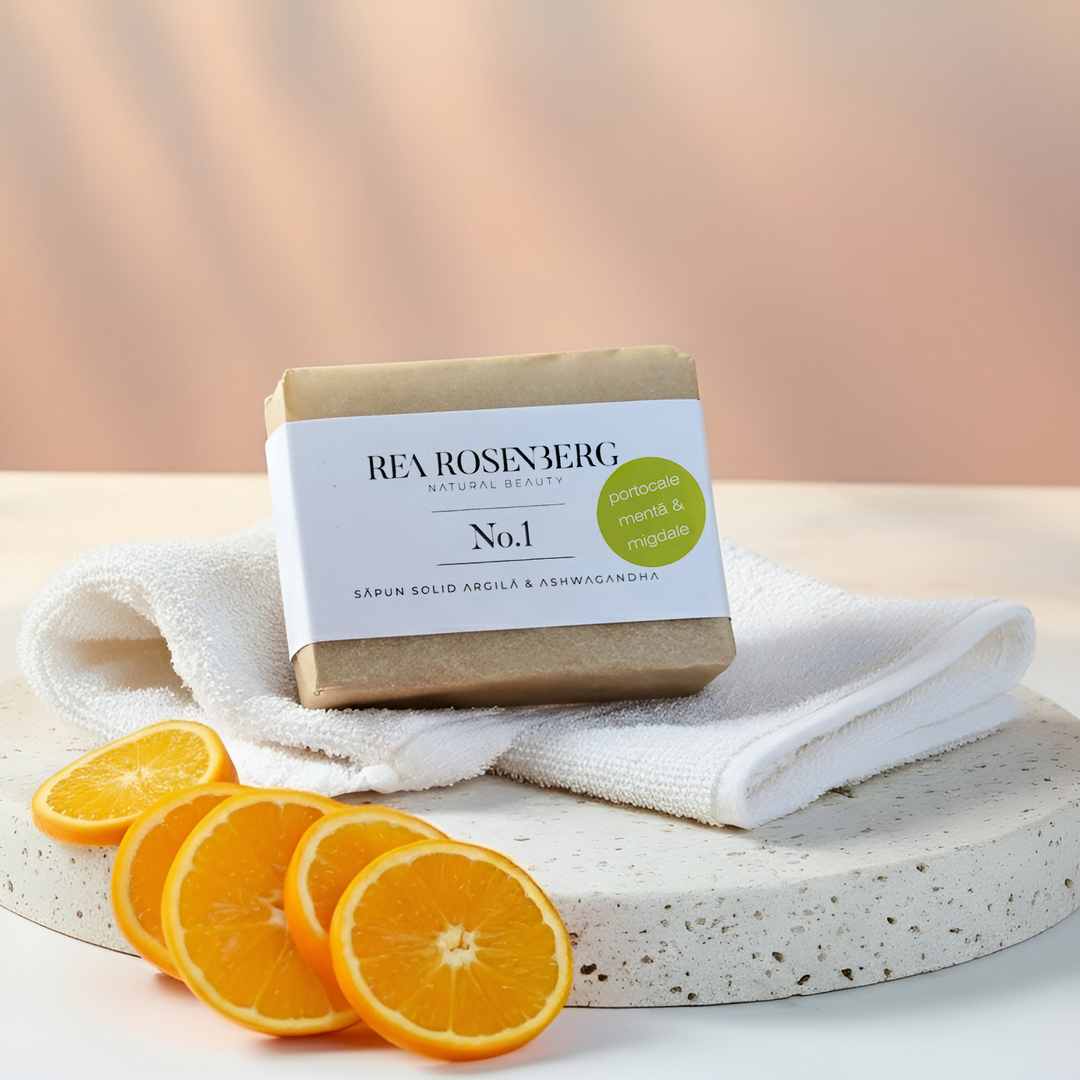 No.1 este un săpun solid ce conține argilă albă și ashwagandha. Săpunul are o textură cremoasă, este blând cu pielea și te va surprinde cu spumă din abundență dar și cu o aromă plăcută și revigorantă de portocale și mentă combinată cu cea de migdale.